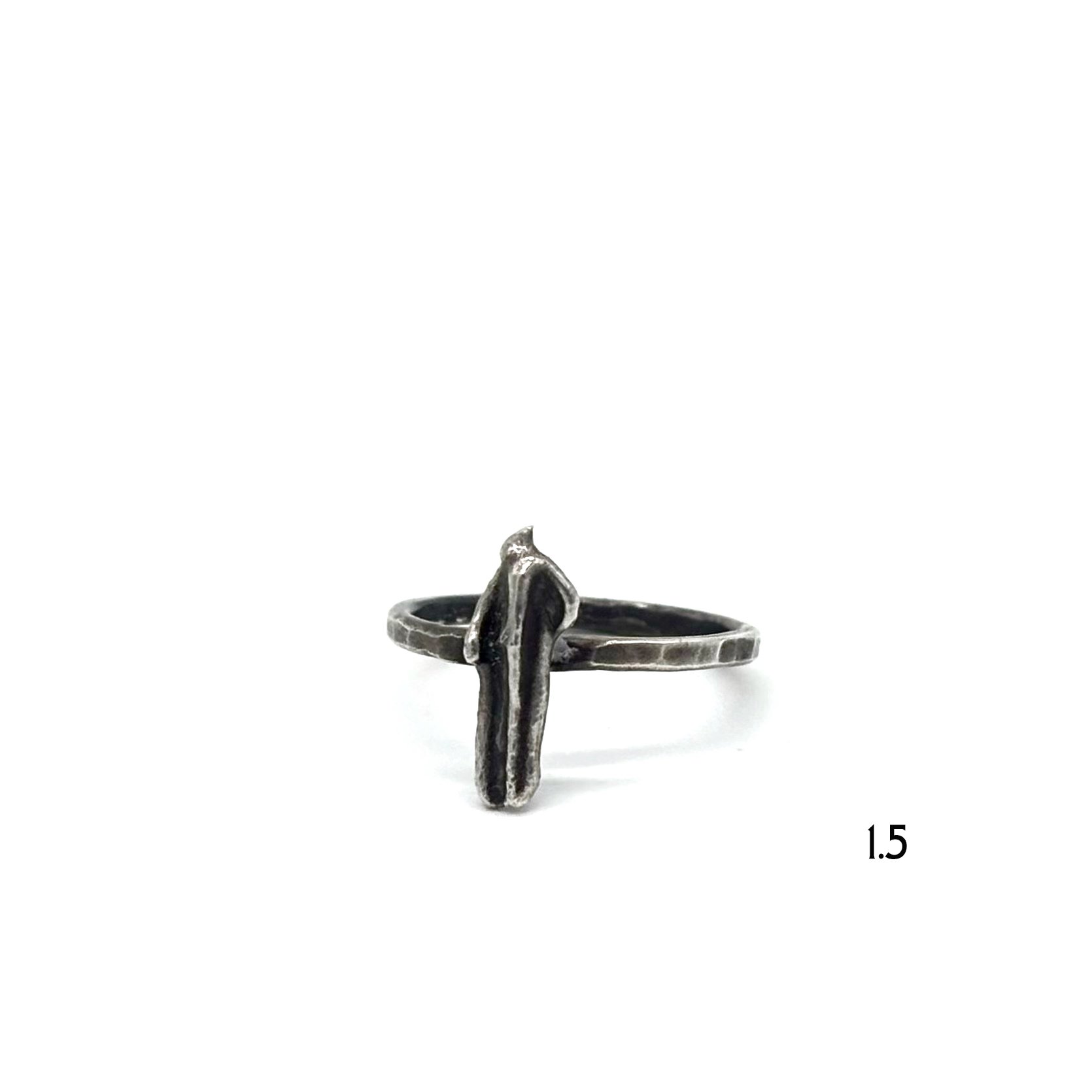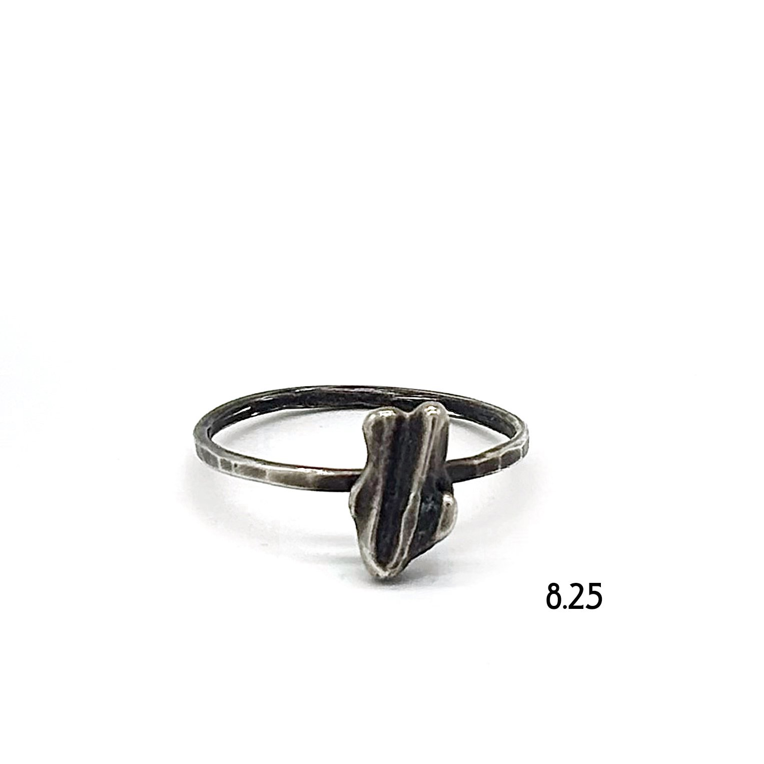 Sterling silver broomcast shard a petite square wire shank. Patinated. Looks great solo, or stacked.